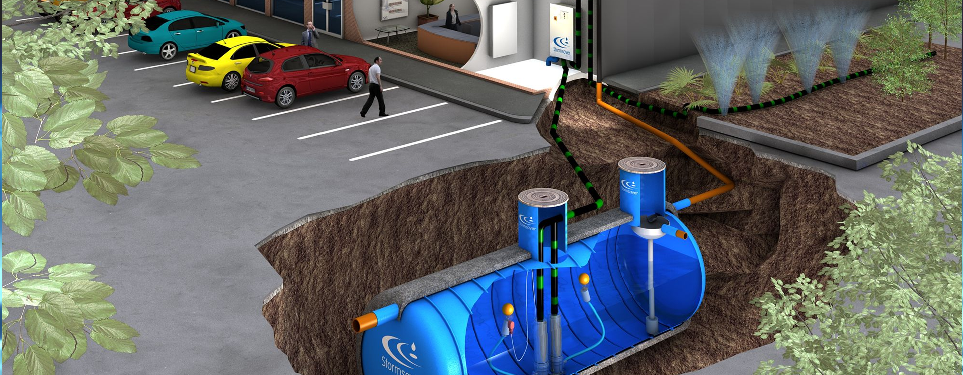 Storing rainwater for ready use in containers above or below ground